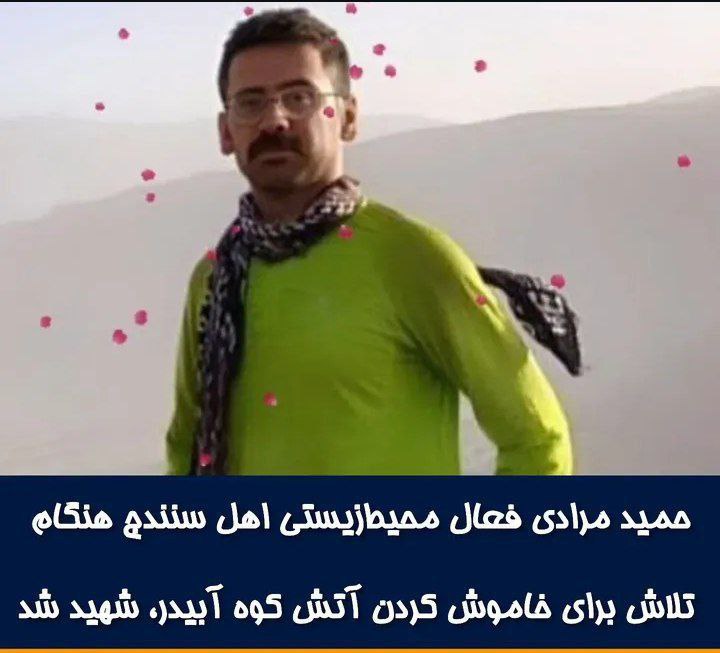 گۆڕان نیوز- حمید مرادی فعال حوزه محیط‌زیست کردستان در پی تلاش برای مهار آتش‌سوزی گسترده در ارتفاعات آبیدر دچار سوختگی شدید شد و علی‌رغم تلاش‌های تیم‌های پزشکی دیشب در بیمارستان کوثر سنندج جان باخت.